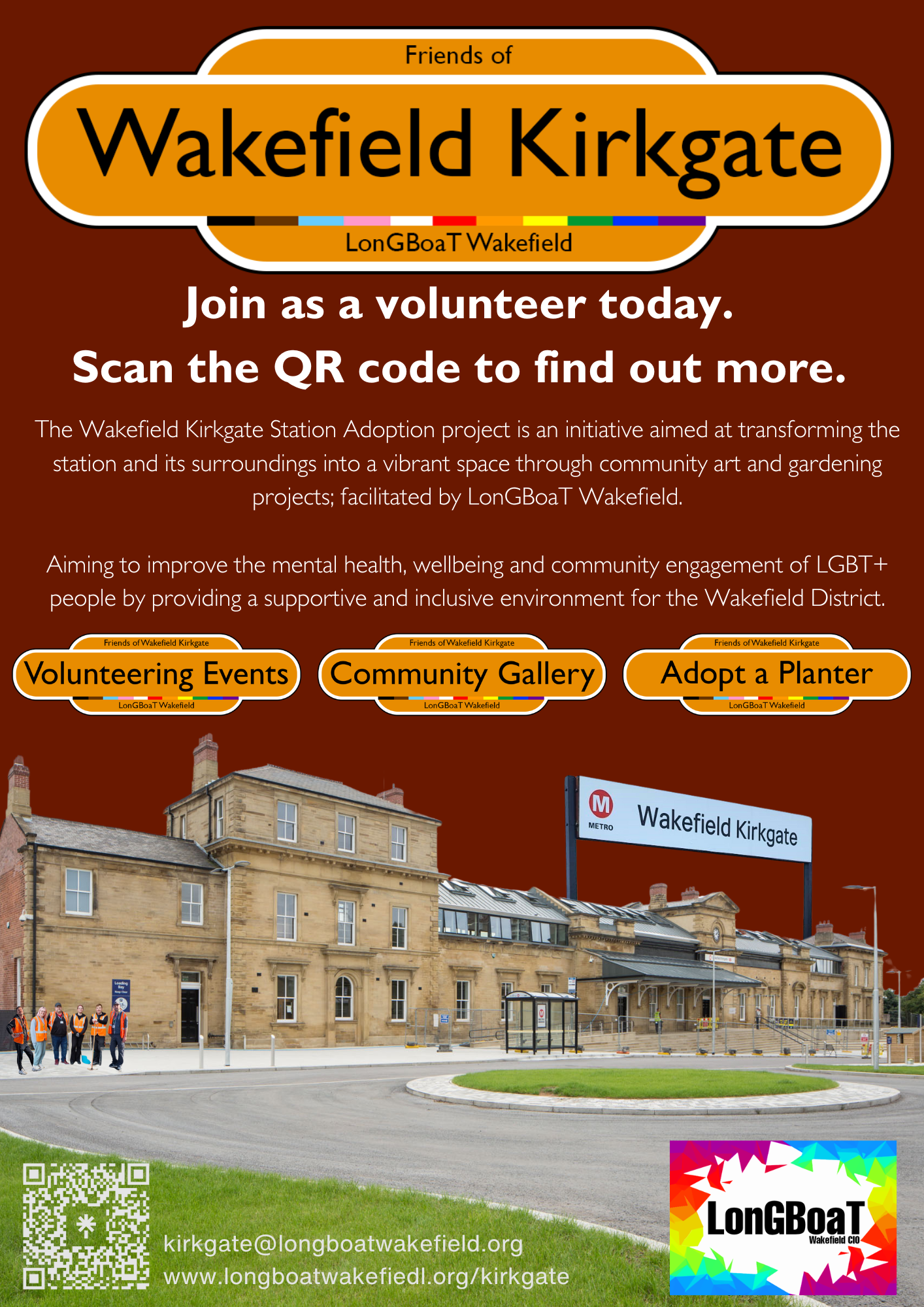 I was asked to create several pieces of branding for the Wakefield Kirkgate Station Adoption project. This included logos, flyers, banners and window graphics.